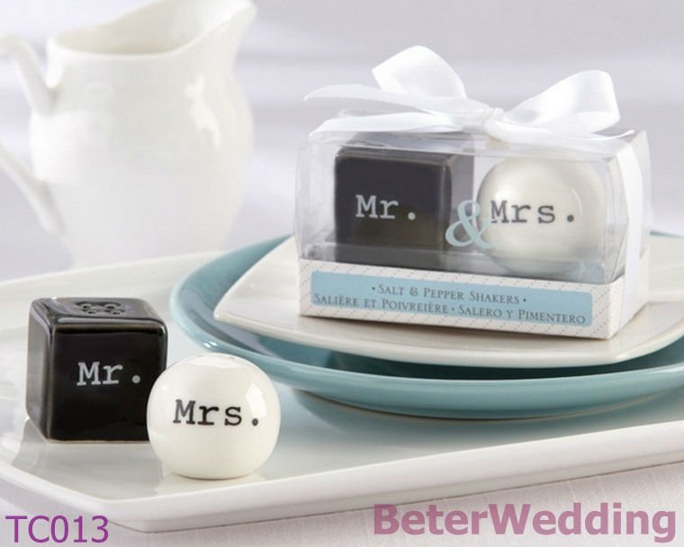 Party Favors, "Mr. & Mrs." Ceramic Salt & Pepper Shakers by BeterWedding.com BETER-TC013